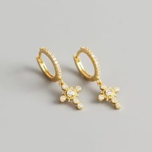 SAINT RAPHAËL Cross Huggie Hoops for Women 18k Gold Plated 925 Sterling Silver